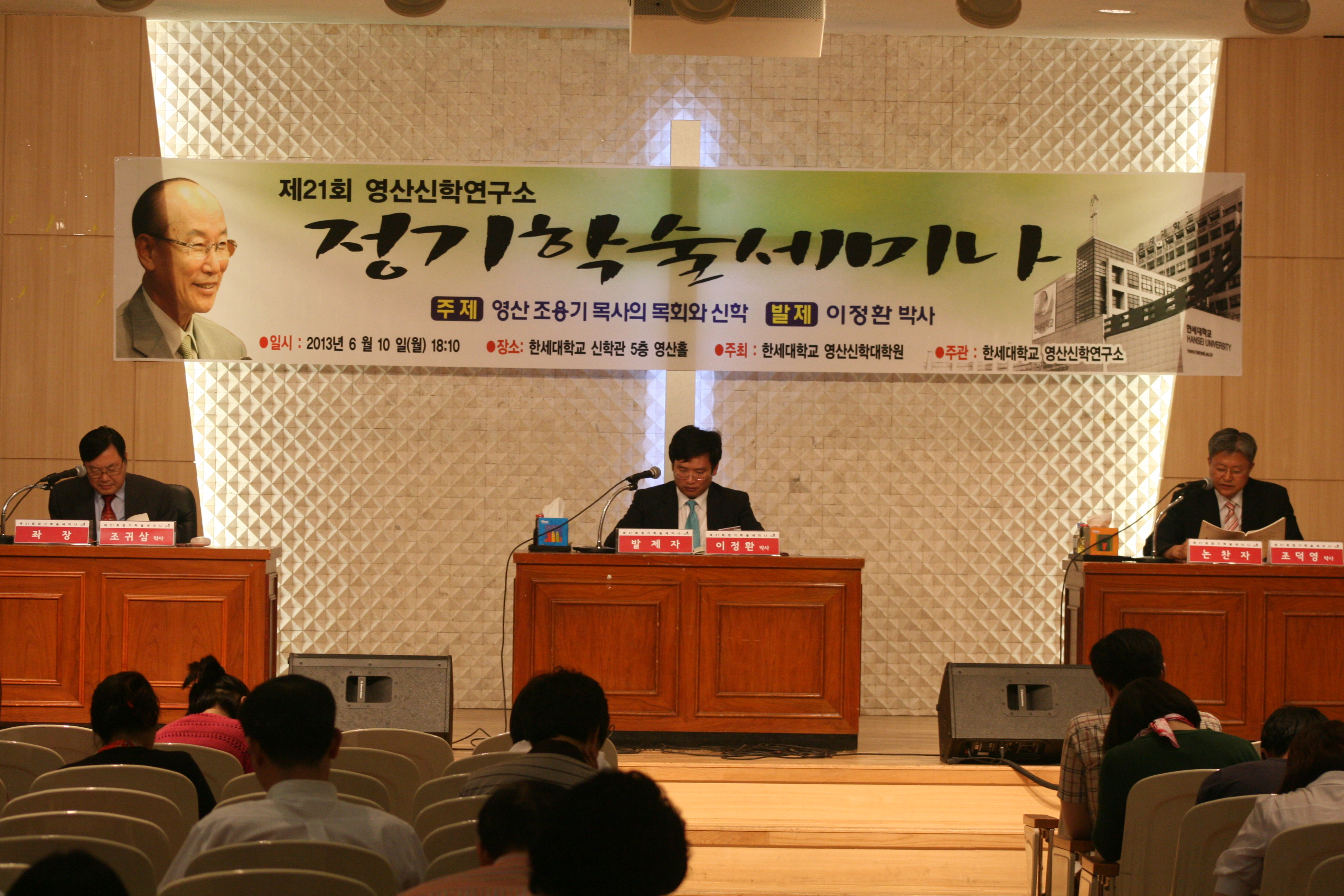 Á¦21ȸ YSTI Á¤±â Çмú ¼¼¹Ì³ª ÀÏ ½Ã : 2013³â 6¿ù 10ÀÏ (¿ù) 18:15 - 19:40 Àå ¼Ò : ÇѼ¼´ëÇб³ ½ÅÇаü ¿µ»êȦ ÁÖ °ü : ¿µ»ê½ÅÇבּ¸¼Ò ÁÖ Á¦ : ¿µ»ê Á¶¿ë±â ¸ñ»çÀÇ ¸ñȸ¿Í ½ÅÇÐ ============================================ (Çà»ç ÀÏÁ¤) 18:15 - 18:20 ¼¼¹Ì³ª ÃëÁö ¹× ÁøÇà ÁÂÀå Á¶±Í»ï ¹Ú»ç (ÇѼ¼´ëÇб³) 18:20 - 19:20 ¹ßÁ¦ (¹ßÁ¦ 45ºÐ, ³íÆò 15ºÐ) ¹ßÁ¦ÀÚ ÀÌÁ¤È¯ ¹Ú»ç (ÇѼ¼´ëÇб³) ³íÆòÀÚ Á¶´ö¿µ ¹Ú»ç (ÆòÅôëÇб³) 19:20 - 19:35 ÁúÀÇÀÀ´ä 19:35 - 19:40 ÃÑÆò ¹× ±âµµ ÁÂÀå Á¶±Í»ï ¹Ú»ç (ÇѼ¼´ëÇб³) ================================================== * Âü¼®ÇØÁֽЏðµç ºÐµé²² °¨»çµå¸³´Ï´Ù.